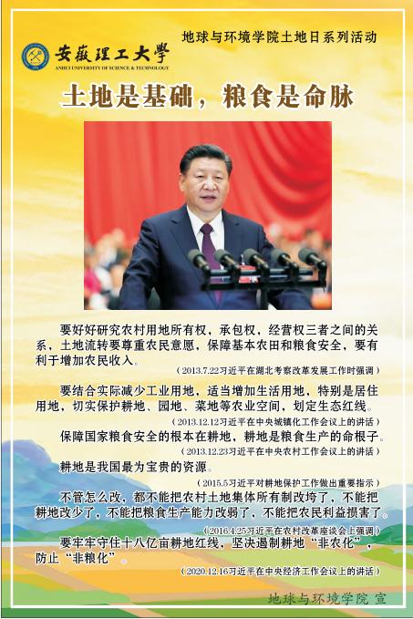 6月25日是全国第33个土地日,为深入学习宣传贯彻习近平新时代中国特色社会主义思想,引导全社会树立节约用地、保护耕地的意识,6月21日至25日,地球与环境学院组织开展以“节约土地资源,严守耕地红线”为主题的土地日系列活动。