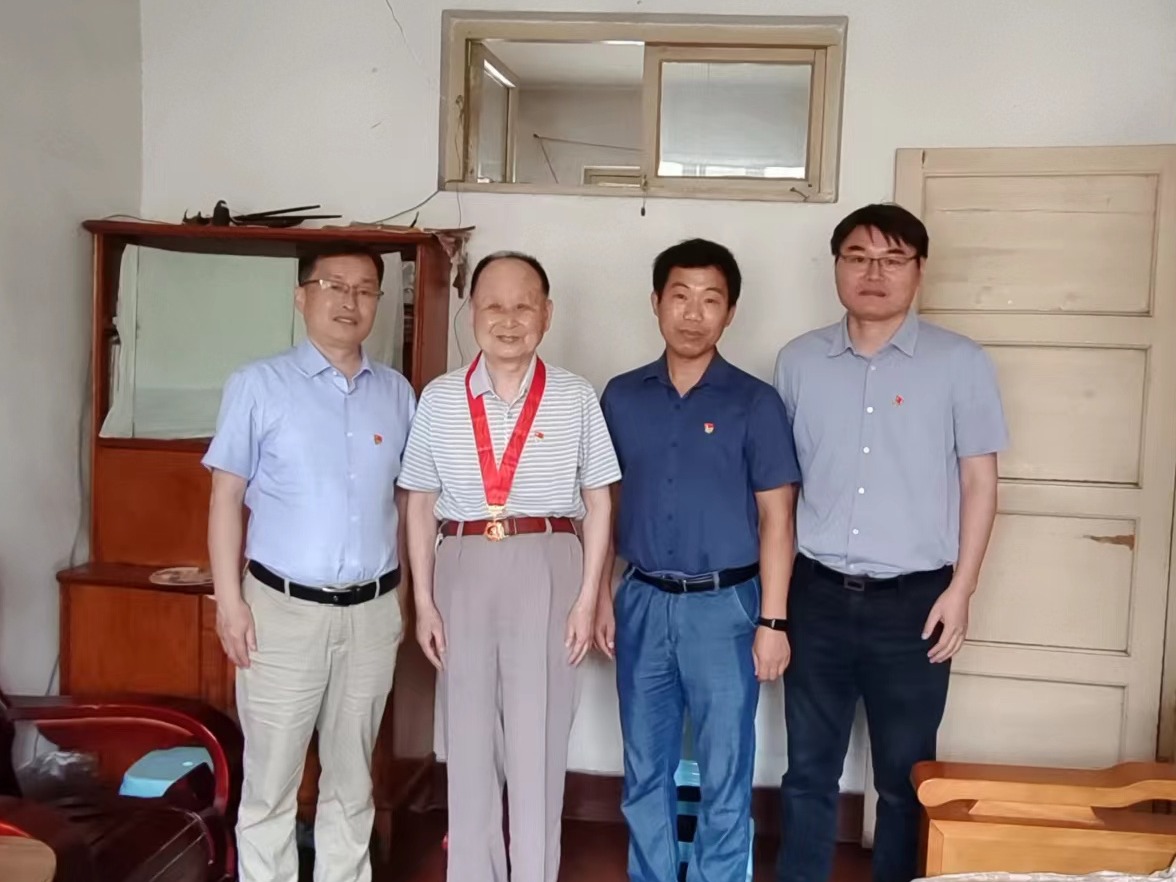 6月29日下午,化学工程学院党委书记徐泽绵、副院长(主持工作)武成利带领化学工程系教工党支部书记、新党员代表,专程上门为老党员鲁德忠、高凤彩两位同志颁发“光荣在党50年”纪念章,为老同志送上慰问品,向他们致以崇高的敬意和节日的问候。