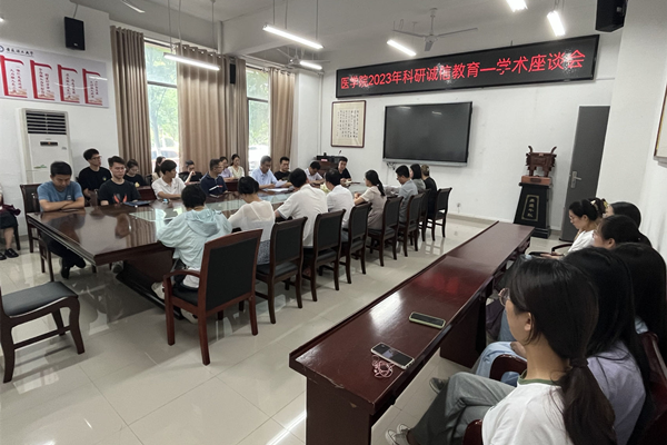 学院集体组织教师及在校研究生召开医学院2023年科研诚信教育-学术座谈会,座谈会由副院长陆军主持。会上,陆军带领大家学习了《关于进一步加强科研诚信建设的若干意见》《关于进一步弘扬科学家精神加强作风和学风建设的意见》《关于进一步完善失信约束制度构建诚信建设长效机制的指导意见》等相关文件,并倡导遵守学术道德,提高诚信意识和水平,推动科技创新,不断提高医学院科研水平。会上,老师与同学们积极交流探讨学术诚信的重要性及学术不端的危害,师生们积极发表自己的感受与体会,表示会积极树立正确的学术观念和诚信观念,做好学术诚信。