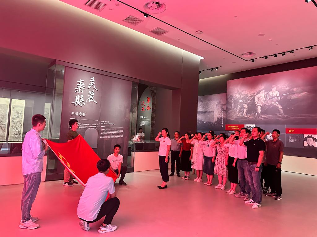 学院党委丰富主题教育形式,组织全体师生党支部书记赴寿县楚文化博物馆开展沉浸式主题党日活动,在了解完安徽最早的党组织——中共寿县小甸集特支开展的革命活动后,全体党员面向鲜红的党旗集体重温入党誓词,在感悟伟大建党精神的同时,感悟初心、践行初心,思想上受到了再洗礼。同时,各党支部组织师生党员就近就便开展红色教育主题党日活动。