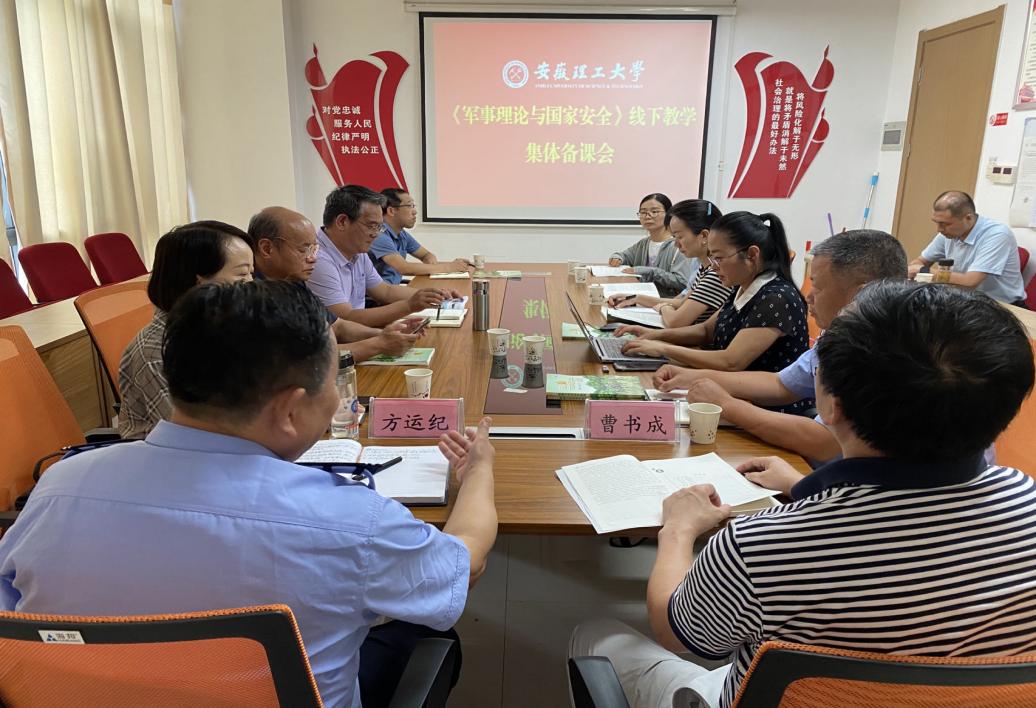 为进一步做好我校大学生军事理论与国家安全课教学工作,提高教师的授课水平和能力,7月6日,我校党委武装部(军事理论教研室)组织召开了军事理论与国家安全课教师集体备课会。备课会由党委武装部部长方运纪主持,全体军事理论与国家安全课教师参加备课会。