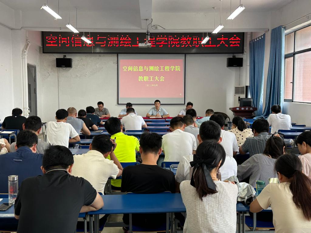 7月12日上午,空间信息与测绘工程学院全体教职工大会于学院楼北512报告厅举行。院领导班子成员和全院教职工参加会议。会议由学院党委书记范洪喜主持。