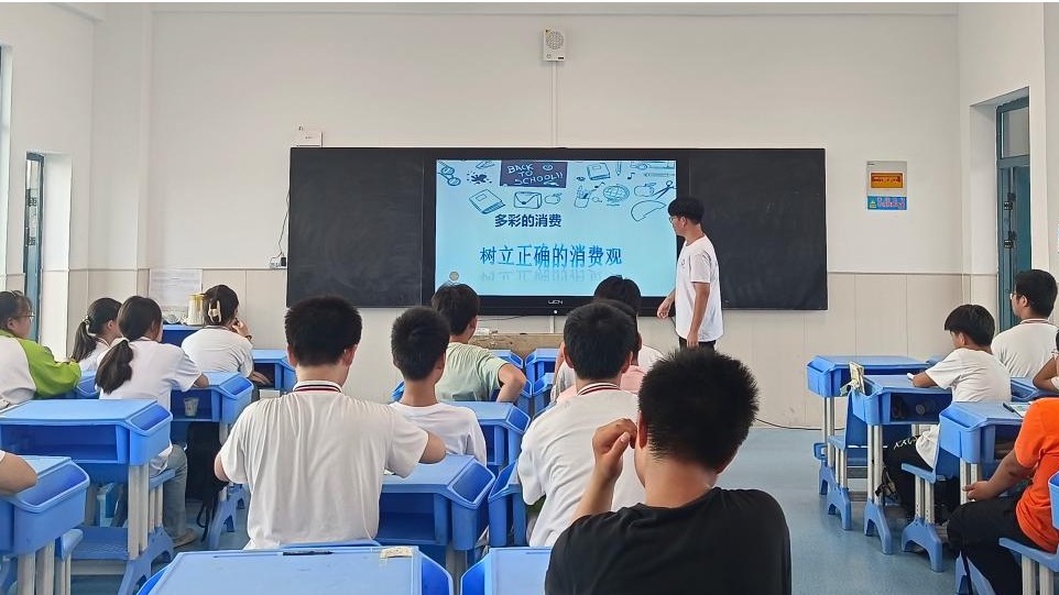 志愿者们和孩子们互相认识之后,支教科普活动正式开始。课程从正确的消费观这一主题引入,引导孩子们分享自己对于消费的理解。通过游戏模拟对财富的分配,进一步帮助孩子们正确认知理财与消费。志愿者通过一系列案例向孩子们讲述了错误的消费观产生的原因和带来的危害,让参与的同学们认识到要靠自己的奋斗逐渐获得财富和幸福生活。课堂上,孩子们踊跃举手发言,积极分享自己的观点,课堂氛围轻松有趣。