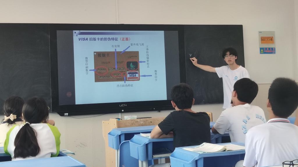 “货币是怎样产生的?”“货币的价值是什么?”“如何更好地管理自己的零花钱?”一系列金融小问题吸引着孩子们的注意。志愿者们通过趣味动画向孩子们普及了货币的由来和发展历程,通过案例教学,进一步讲解了银行系统的基础知识,介绍了借记卡和信用卡的区别,手把手帮助孩子们识别银行卡的真假以及辨别人民币的真伪。在课堂中还随机设置了金融知识小竞赛,同学们结合所学知识分组参加比赛,小组内进行了热火朝天的讨论,孩子们不仅收获了金融知识,也收获了团队友情。