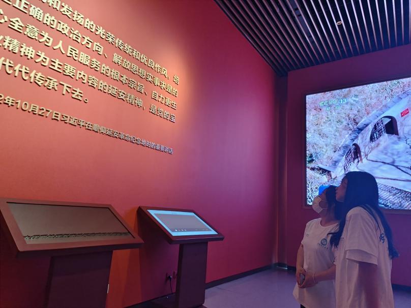 延安,中华民族和中国革命的重要起源地。7月13日,实践团队成员到达延安革命纪念馆展开学习与调研。纪念馆坐落于连基座通高8.15米的毛泽东主席纪念铜像之后,参观团队络绎不绝。接下来团队成员进入纪念馆内厅,映入眼帘的是雄伟壮观的巨型青铜群雕《在陕北红色岁月里》;随后进入展厅深入了解学习延安精神的形成与发展,依次穿过六大展厅,老一辈无产阶级革命家当年在延安住窑洞、吃小米、驱日寇的历史生动展现在成员们眼前,团队成员学习感受不同时期延安精神的解读与发展,并学习习近平总书记在延安革命纪念地时的重要讲话,感受波澜壮阔的十三年延安岁月。从展馆出来,成员们无不心怀敬仰、感慨万分,红色延安凝炼出的第一批中国共产党人精神谱系的伟大精神——延安精神,成就为一座永垂不朽的红色基因库。