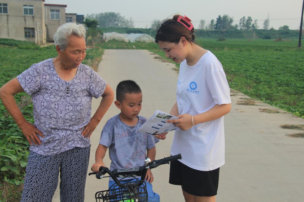 7月14日,实践团的志愿者走访入户发放宣传单,宣传防溺水、防电诈安全知识,并联合赛涧回族乡中心学校前往姜唐湖退水闸管理处开展现场防溺水宣传教育,主动构筑起家庭及留守儿童的生命安全坚实防线。为增强宣传效果,现场还布置了宣传展板和宣传条幅,并为大家发放了宣传袋、宣传手册。