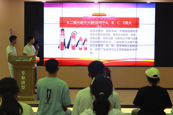 最后,消防队王班长为志愿者们进行消防安全的专题培训,传授消防安全理论知识和消防器材的使用方法。消防大队杨队长说到:“非常欢迎同学们来基地体验消防训练,同时也希望同学们多多开展宣讲,期待你们下次再来时带着宣讲成果与我们分享。”实践队员们纷纷表示一定会做好宣传,让消防安全深入人心。