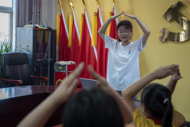 时代在发展,科技在进步,但文化的传承永久不息。为增强留守儿童的文化自信,让中华优秀传统文化更好地得到传承和发扬,实践团队开展了“观文化昌盛,延传承火炬”的传统文化学习活动。活动中,实践团成员教授孩子们传统诗词《游子吟》,领略古诗词的魅力。志愿者还带领孩子们背诵《三字经》、教孩子们《三字经》手势舞,激起了留守儿童学习传统文化的兴趣。在志愿者的带领下,孩子们有耐心地学习每个手语动作,指尖上处处洋溢着幸福。他们于无声处感受传统文化的魅力,在手臂间坚定了为传承中华传统文化贡献力量的信念。