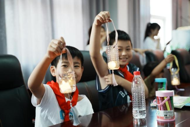 活动中,志愿者带领孩子们观看《我是小小设计师》微课视频,一起学习创意绘画,激发孩子们的想象力。再通过古诗《村居》引出绘画内容——纸鸢。孩子们在志愿者的耐心引导下一步步画出锦鲤样式的纸鸢,提升了孩子们的美育水平。随后,志愿者带领孩子们观看科技创新发展视频,组织孩子们进行“变废为宝”手工制作,用废矿泉水瓶等材料做了流苏烛灯。一系列活动在培养孩子们动手能力和创新精神的同时,也提高了他们爱护环境、珍惜资源、合理利用资源的环保意识。用画笔描绘可爱的图案,用巧手制作精美的烛灯,每一件作品都体现了孩子们对美的追求和向往。孩子们的脸上洋溢着灿烂的笑容,满满的成就感蕴藏在志愿者的心间。