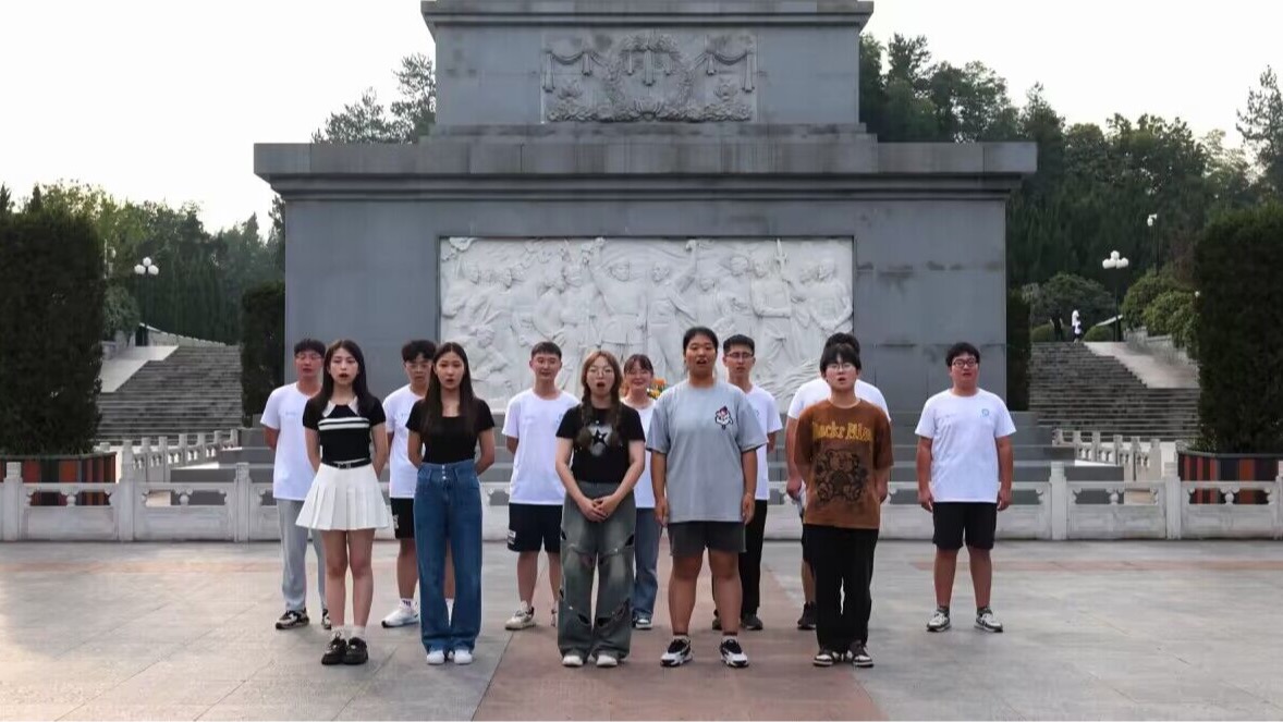 一首赞歌:在革命烈士纪念碑前,团队成员合唱了一首赞歌——《我和我的祖国》,感悟来之不易的幸福生活。