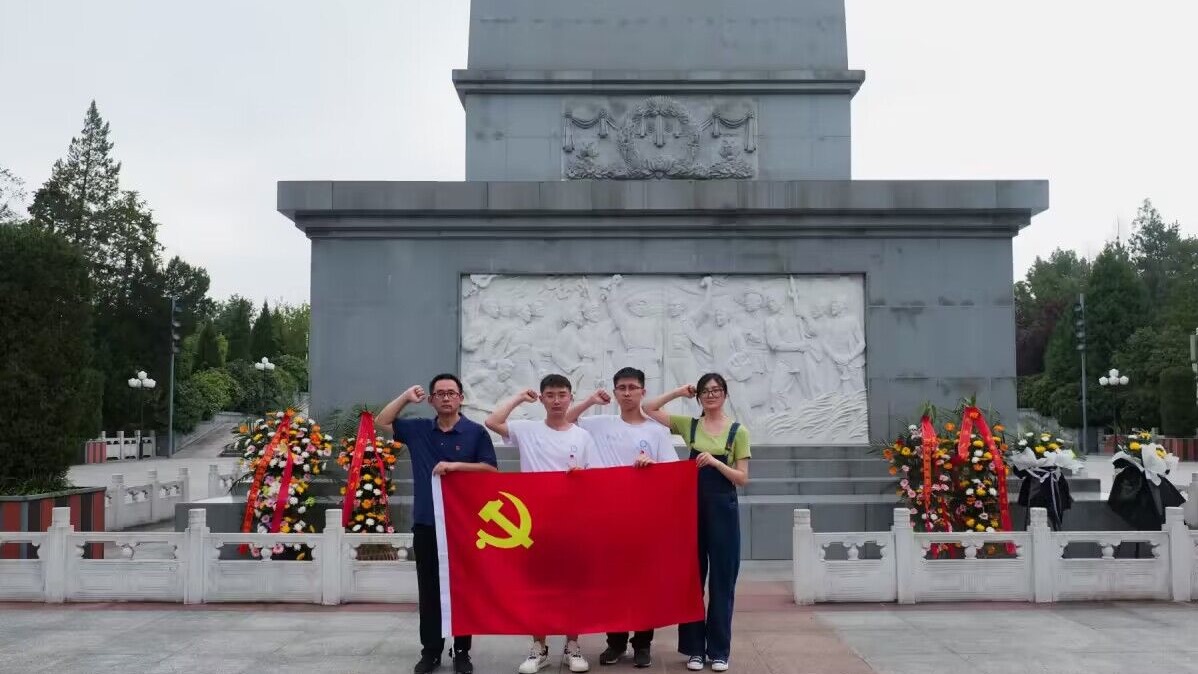 一段誓词:在革命烈士纪念碑前,团队中的4名党员在革命烈士纪念碑下重温了入党誓词,加强了党性修养,坚定了理想信念。
