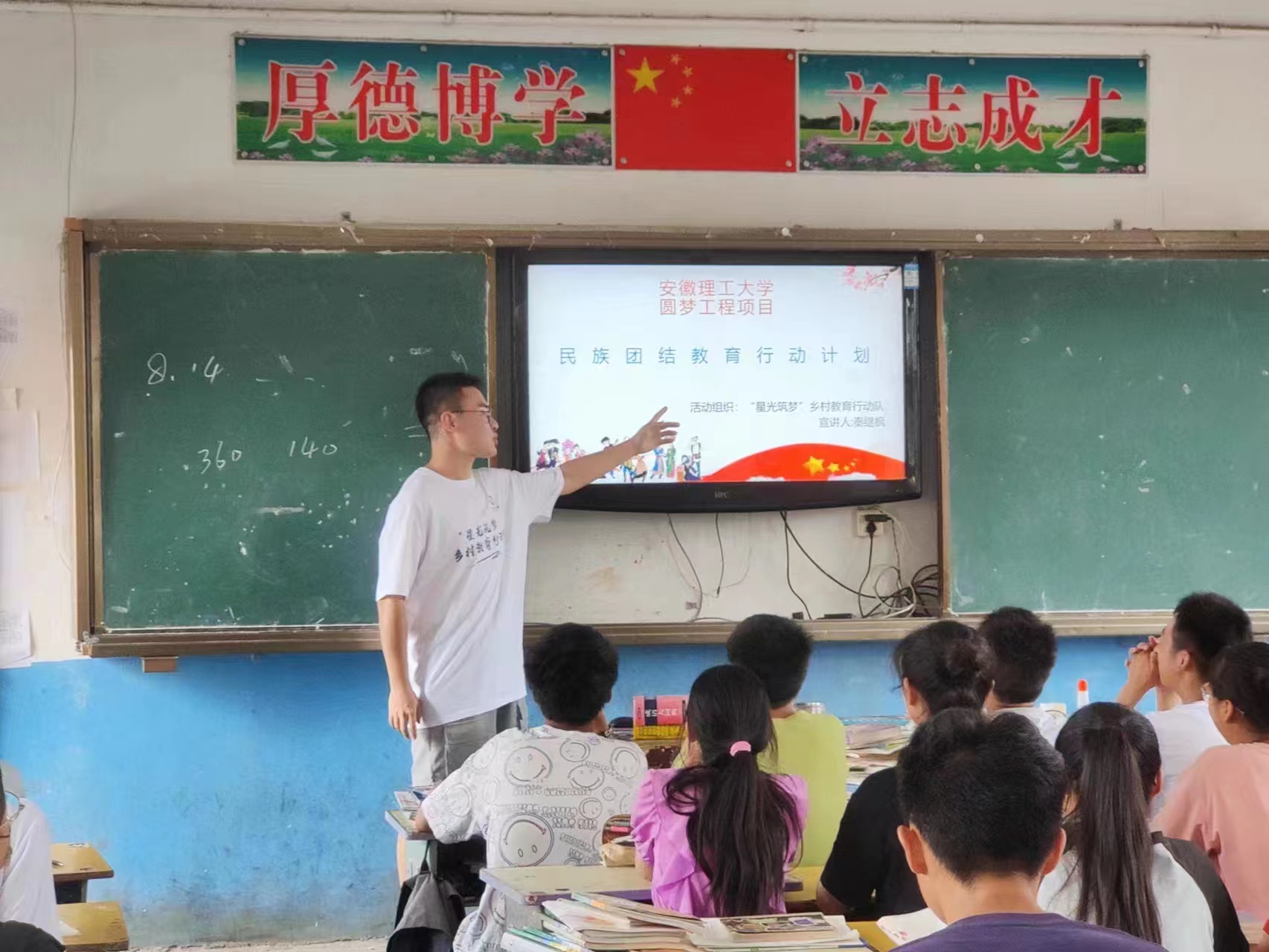 7月27日,“星光筑梦”乡村教育社会实践团前往淮南市芦集镇开展弘扬中华传统美德和民族团结理论宣讲社会实践活动。为了加强青少年学生对中华传统美德的认知,增进民族团结,实践团走进芦集中心学校,进行中华传统美德的价值和精神、民族团结的内容建设和深度意义以及前期调研学习成果的宣讲。