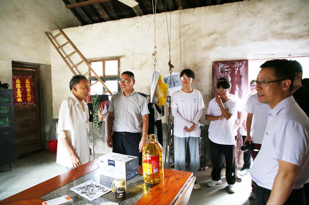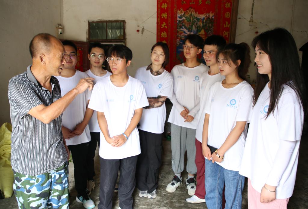 在老党员、老军人胡宗斌的家中,志愿者为他们送上粮油、牛奶等慰问品,详细了解他们的生活和身体情况,把温暖的关怀真正送到他们心中。胡宗斌拉着同学们的手亲切交流,回顾党的发展历程,畅想美好未来生活,衷心感谢党和国家对农民、对退伍军人的关心。汲取前辈的智慧和力量,学习榜样的精神,使志愿者们更加坚定了为建设社会主义现代化强国的决心。驻地实践队员、弹药21-5班孙承骏同学说:“老党员给我们上了一堂生动的思政课,他们是党和国家历史的亲历者、建设者,他们用信念、知识服务社会,将青春献给党和国家,我们新时代的大学生一定要传承和弘扬他们这种精神,接过接力棒,为实现复兴梦贡献自己的青春。”