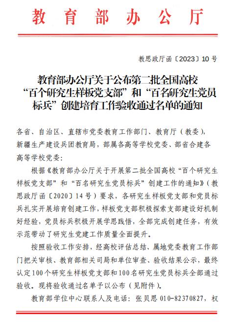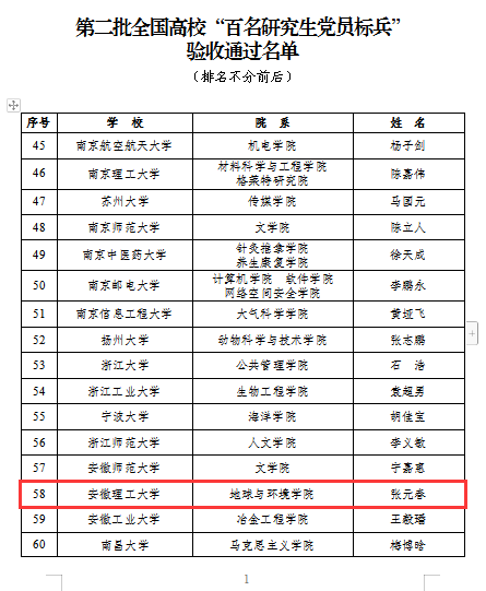近日,教育部办公厅公布第二批全国高校“百名研究生党员标兵”创建培育工作验收结果,我校2018级环境工程博士研究生张元春顺利通过全国高校“百名研究生党员标兵”验收。