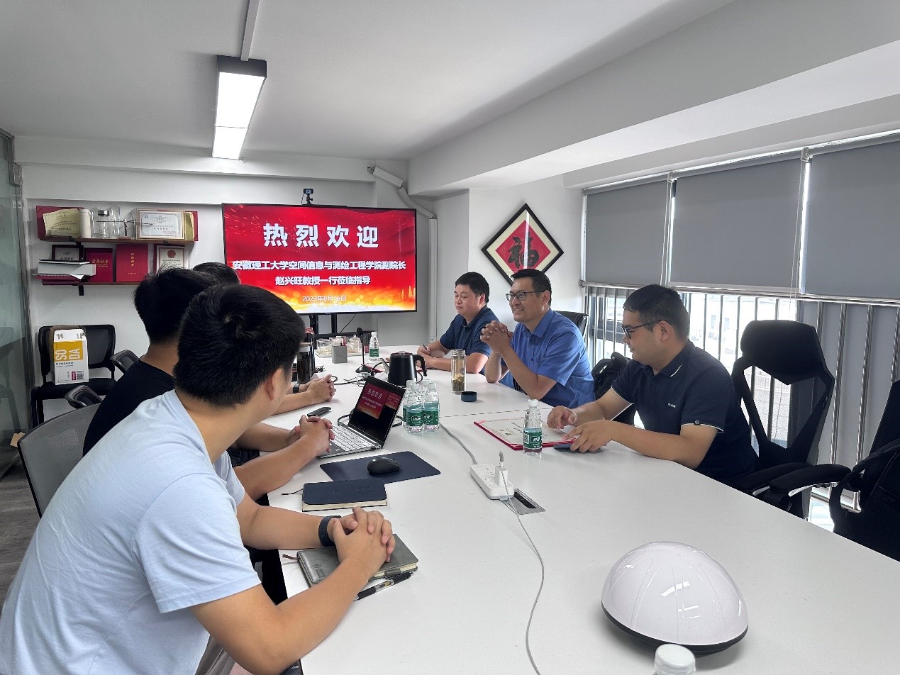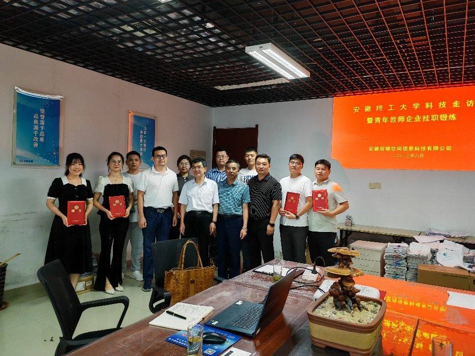 8月15日,院长余学祥教授等一行10人赴安徽前锦空间信息科技有限公司走访,双方就“城市实景三维与智能安全监测安徽省联合共建学科重点实验室”建设和企业技术需求等内容进行了深入探讨。余学祥一行与今年就职于该企业的毕业生们深入交谈,了解他们的工作情况以及对现有人才培养方案的建议,鼓励他们尽快适应新的工作环境与岗位。此外,为了将专业知识与企业实践有机结合,培养“双师型”教师,学院选派了8名青年教师赴安徽前锦空间信息科技有限公司挂职锻炼,公司为青年教师颁发了聘书。