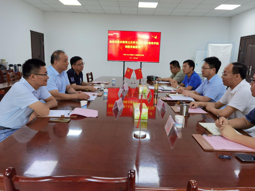 为进一步推动学院学科建设和专业发展,8月23日至25日,力物学院副院长(主持工作)圣宗强等一行4人前往安徽工业大学微电子与数据科学学院进行调研交流,微电子与数据科学学院副院长杨二光等5位相关负责人出席交流座谈会,双方深入探讨了学科建设、学位点建设、科普基地建设等方面的情况。