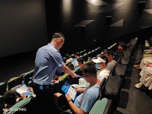 放映前,山南公安分局王远警官为现场师生发放反电诈宣传手册,并以案说法,现场讲解了常见诈骗手段、套路、典型案例及相关预防措施,告诫师生日常中要做到不轻信、不透露、不转账、不参与、护隐私、抵诱惑,不给犯罪分子可乘之机。