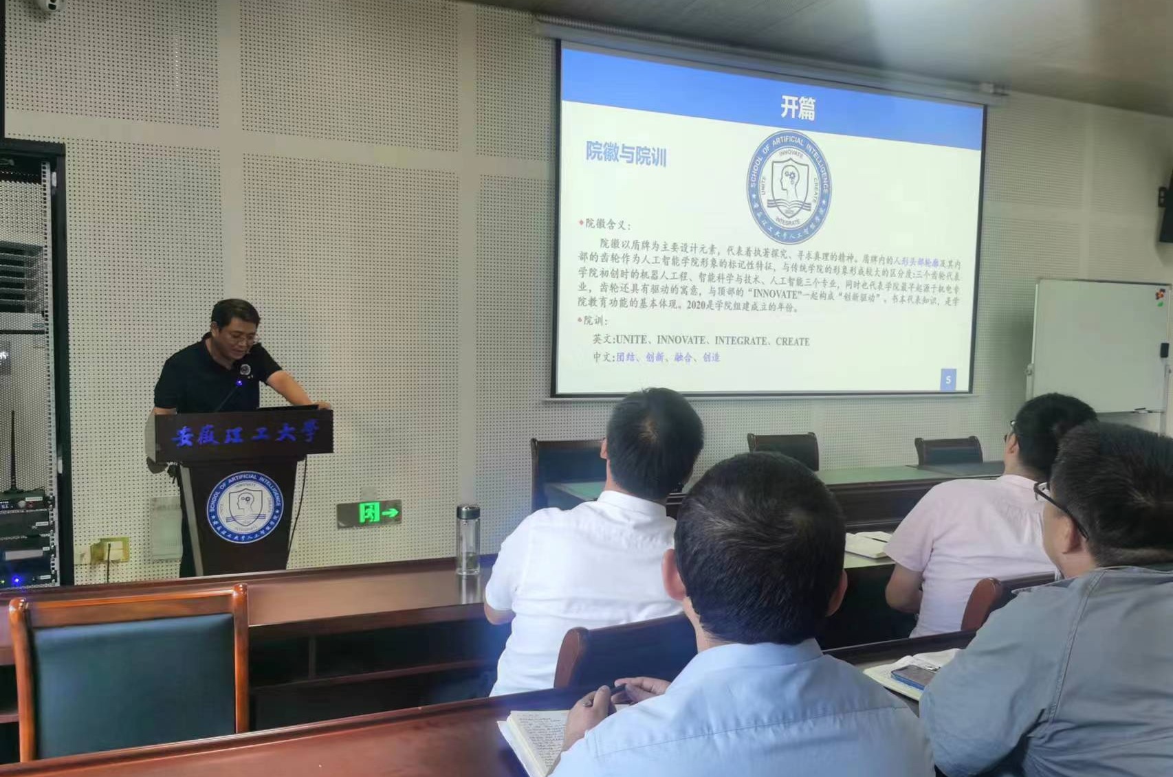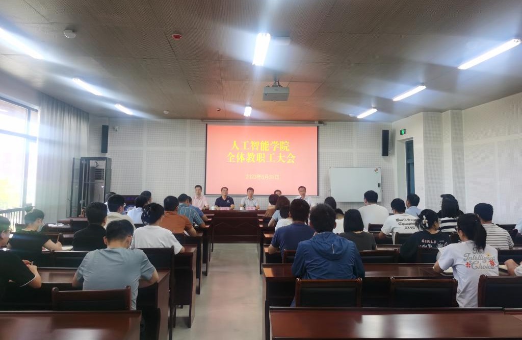 8月31日下午,人工智能学院在明德楼2楼报告厅召开全体教职工大会,学习习近平总书记在中央政治局第五次集体学习时的重要讲话精神,总结暑期工作,部署本学期重点工作。学院党委书记张旸主持会议,学院领导班子成员,全体教职工参加会议。