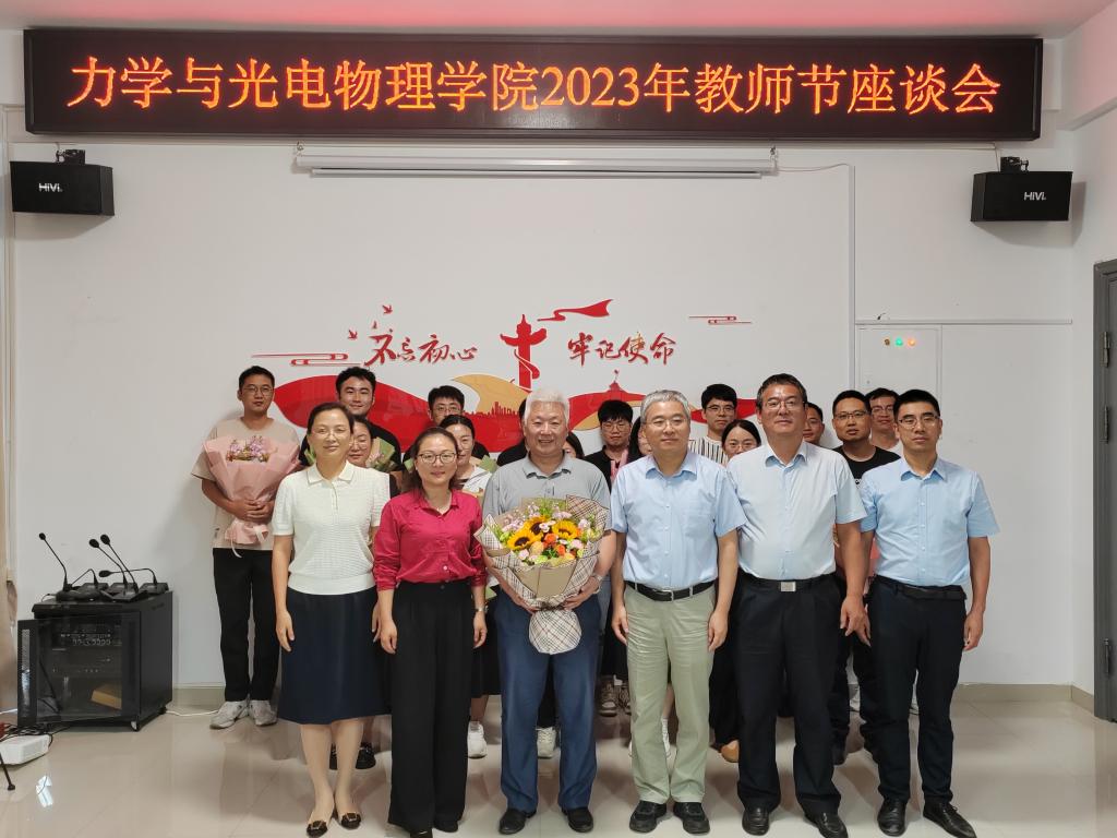 9月6日下午,力物学院在明道楼A320会议室召开庆祝全国第39个教师节暨师德师风建设座谈会。学院党委书记刘艳、院长王群、党委副书记孙东升、常务副院长高娟、副院长卢小雨出席座谈会,老、中、青教师代表以及新进教师20余人参加座谈。会议由刘艳主持。