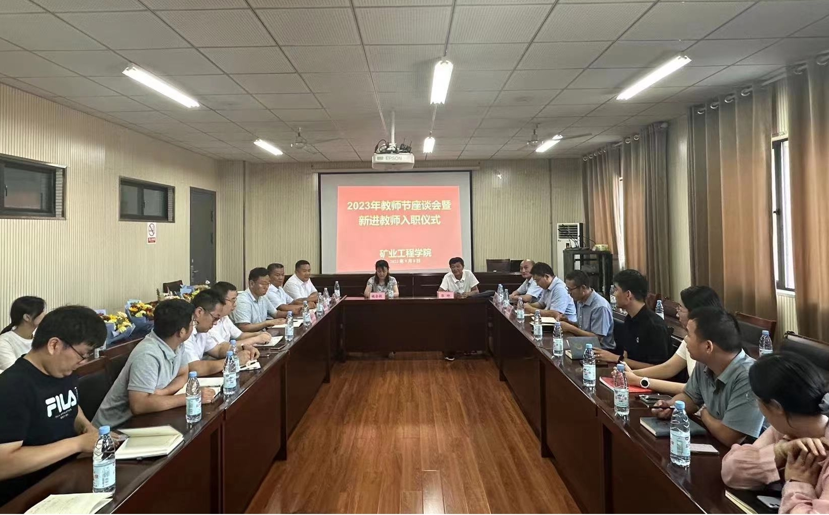 9月8日下午,矿业工程学院在宁远楼A410举办第39个教师节座谈会暨新进教师入职仪式,勉励学院教师言为士则、行为世范,铸牢立德树人之魂,涵养教书育人之风。学院领导班子、系(中心)负责人、退休教师代表和青年教师代表参加会议,会议由副院长(主持工作)常聚才主持。