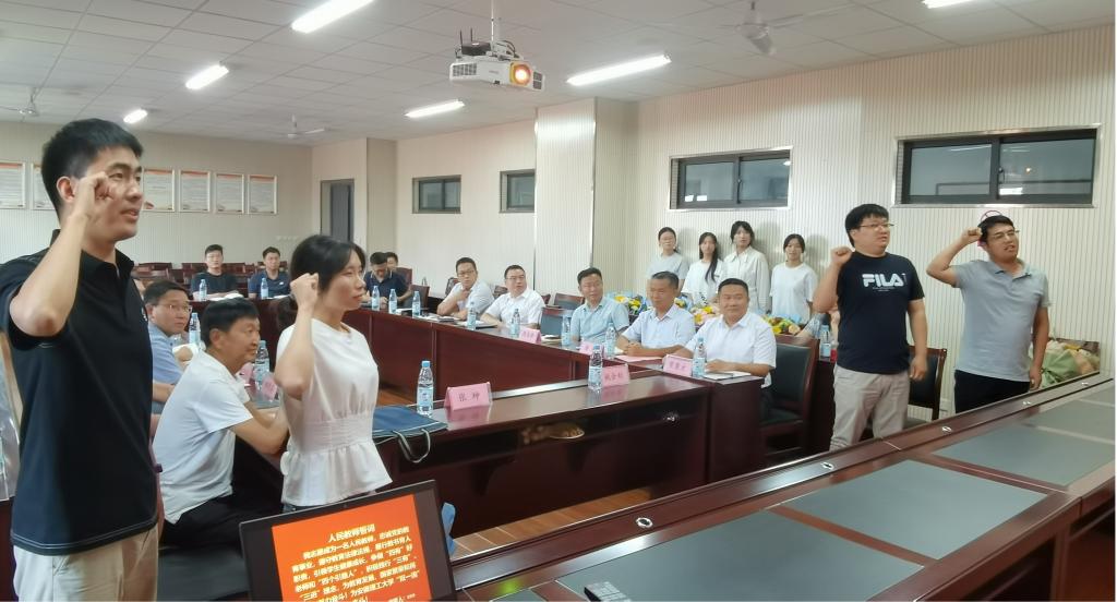 “我志愿成为一名人民教师,忠诚党的教育事业,遵守教育法律法规,履行教书育人职责……”学院4位新入职教师庄严宣誓。一句誓言,一份担当,4位青年教师表示将把誓词作为自己的行为准则,牢固树立“躬耕教坛,强国有我”的志向与抱负,迅速适应从学生到教师的角色转换,多向有经验的老师虚心请教,不断提升专业素养和教育教学水平,争做“四有”好老师和“四个引路人”,为学校和学院发展贡献力量。