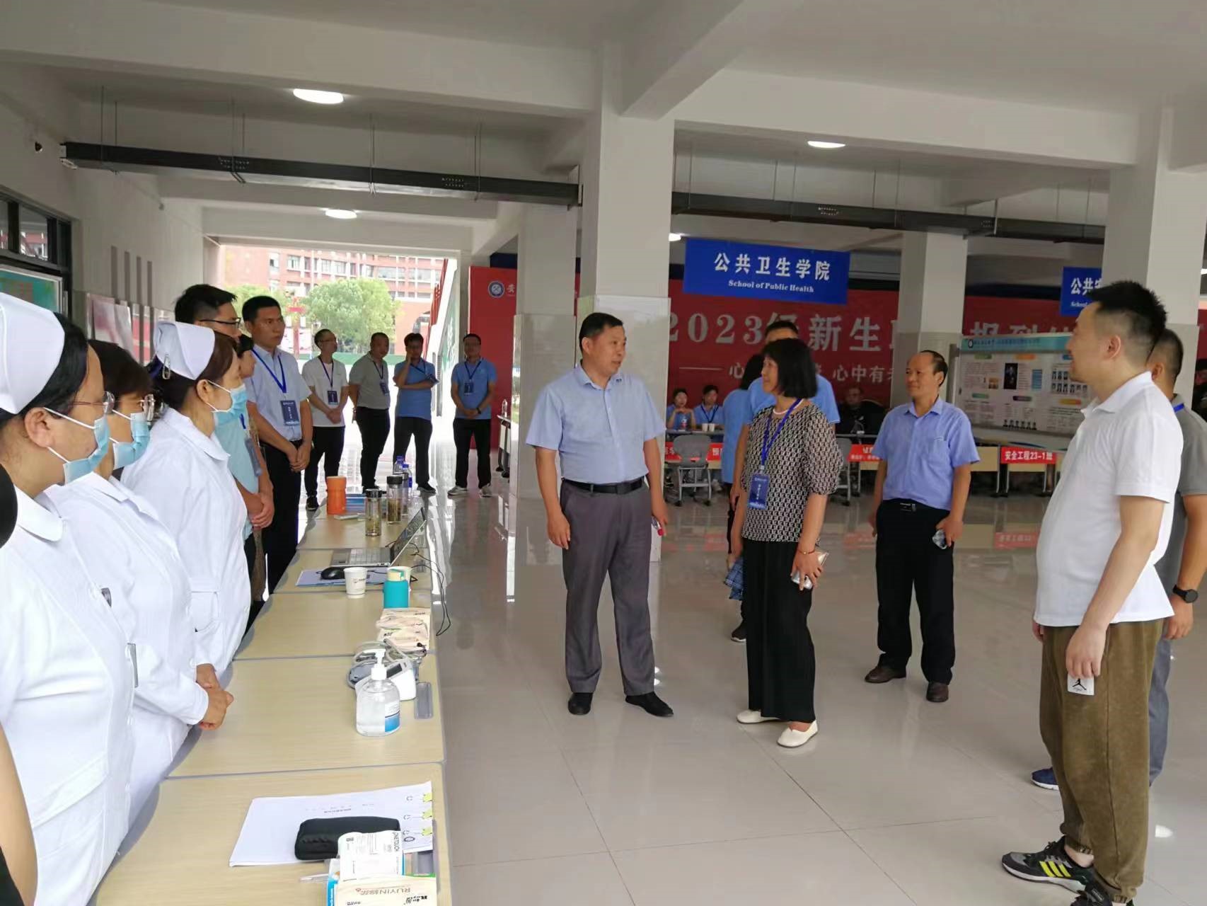 9月11日,校党委常委、副校长,医学部主任鲁超在医学部相关负责人陪同下,深入医学院、公共卫生学院、第一临床医学院新生报到处和迎新医疗保障点,查看医学新生报到的各环节工作,慰问工作人员和学生志愿者,并到学生宿舍亲切看望前来报到的2023级新生以及新生家长。
