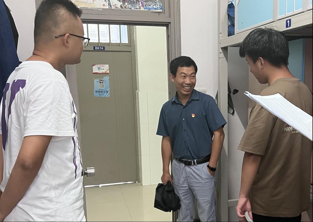 走访中,老师们询问了同学们的具体情况和他们到校后的所感所想。希望同学们珍视共同求学的同学缘,互帮互助拧成一股绳,打造积极向上、和谐友善的寝室文化。鼓励同学们尽快融入集体,适应大学生活,建立和谐融洽的人际关系。叮嘱同学们要调整好状态,以饱满热情投入即将迎来的大学学习和生活。提醒同学们要有目标、有规划,利用好学校的各种学习资源,学好知识,提升自身价值。要求同学们在日常生活中也要养成良好生活习惯,提升防范意识,谨防电信网络诈骗。