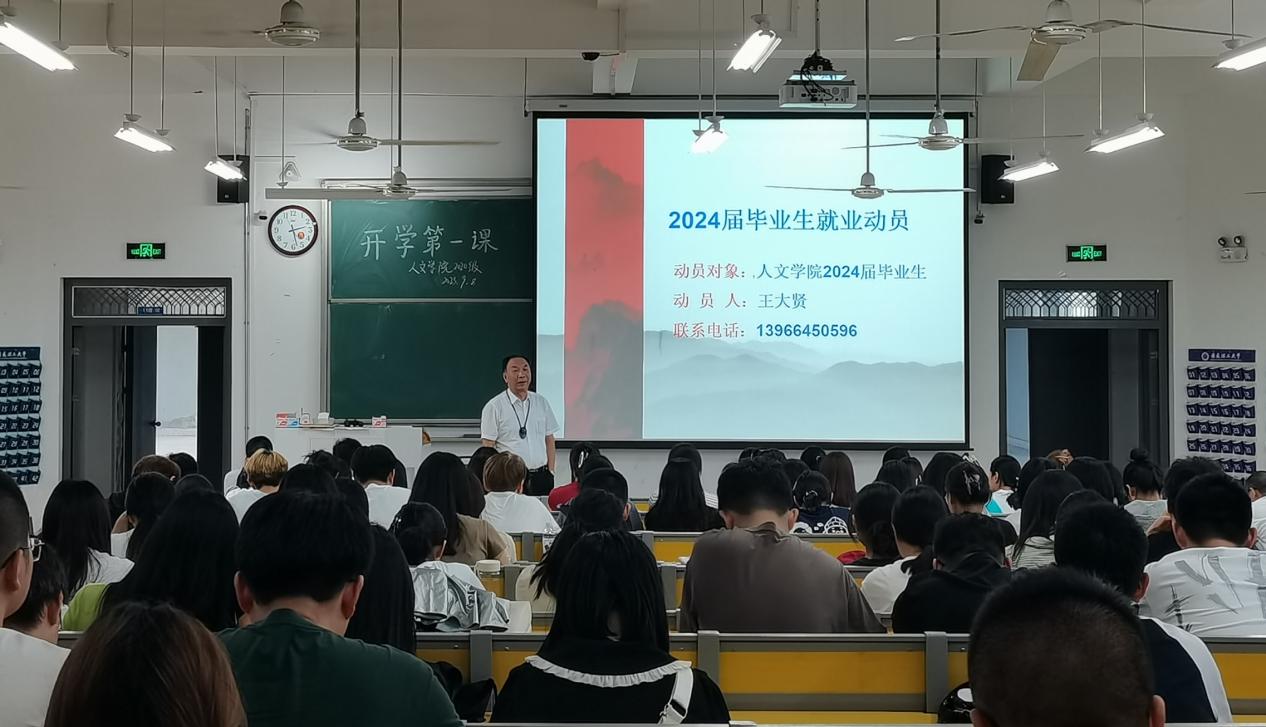 为推进学院就业、考研工作,9月8日下午,人文学院在明理202教室召2024届毕业生就业、考研动员大会。学院党委书记王大贤、院长方胜、教师代表李佳鹏、毕业班辅导员、研究生支教团优秀学生代表陈悦以及200余名毕业生参会。会议由学院院长方胜主持。