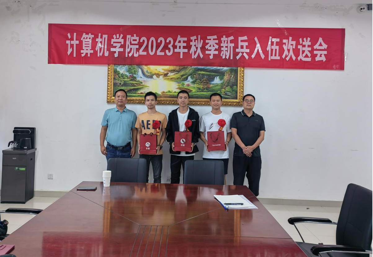 参军报国心向党,又是一年送兵时。9月13日上午,计算机学院在B403会议室召开2023年秋季新兵入伍欢送会,学院党委副书记刘中廷、院征兵工作联系人及毕业班辅导员参加欢送仪式。
