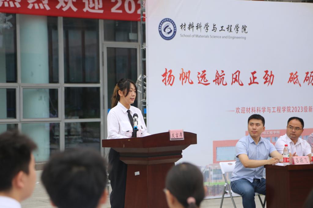 高分子材料与工程2023级学生杨嘉雯作为新生代表发言,她分享了高中时代拼搏的岁月,交流了来安理后的成长点滴,“不论是迎新现场还是入学教育,深深感受到教师对学生的关爱、关心和关照。”展望未来,她表示作为一名新安理材料人,要快速进入角色,多向师长请教,沉下心来学习,向下扎根,向上生长。