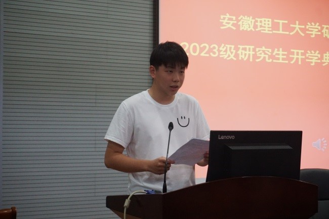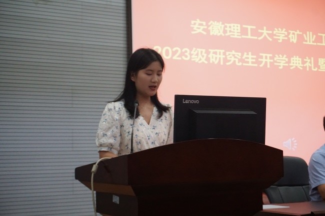 研究生代表宋克静分享了在安徽理工大学的七年学习生活,鼓励师弟师妹们做好规划,勤于落实,端正态度,敢于创新,善于发现问题,不断提升科研能力。2023级新生代表王长城表示,作为一名踏上征途的研究生新生,应尽快找准研究方向,做好学习规划,打好学科基础,产出高质量成果。