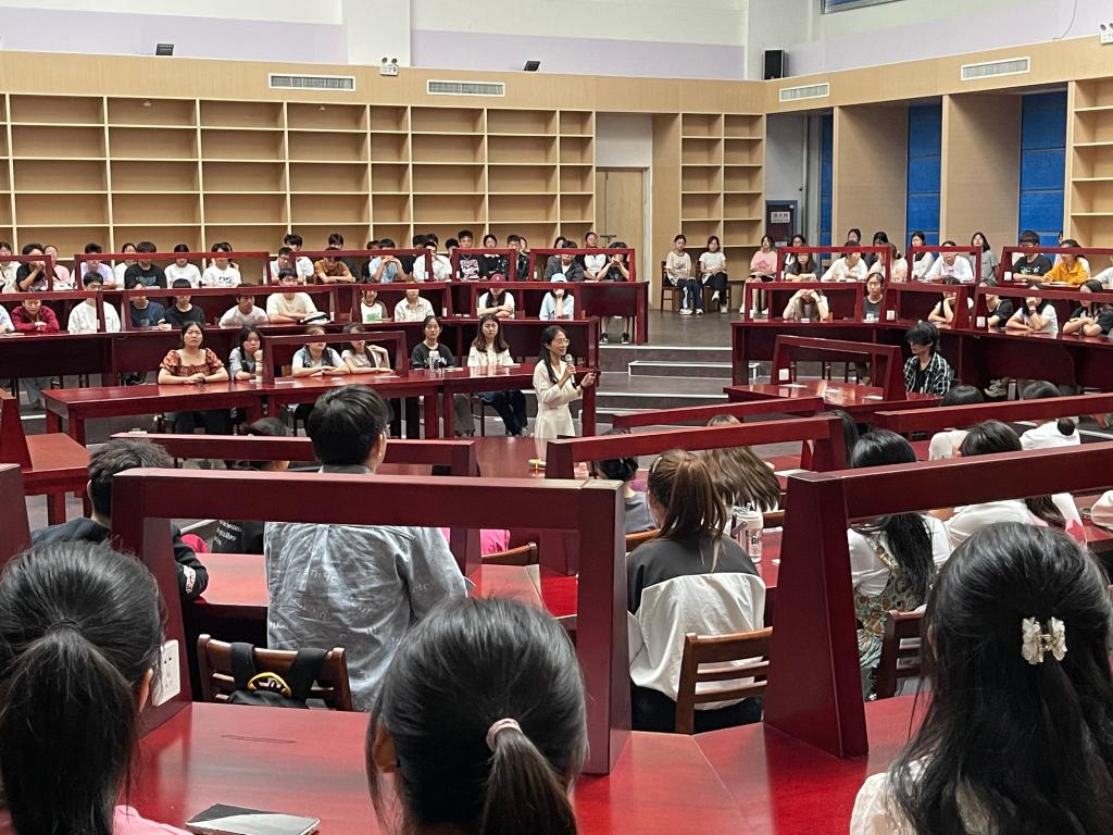 9月15日上午,周雪晴结合学院实际,为全体新生讲解了学院近5年的就业、考研、出国留学、考公考编概况。周雪晴指出,近年来就业形势较为严峻,希望同学们从进校开始就制定职业生涯规划并为之不懈奋斗,筑牢专业根基,更加积极努力地学习,以应对不断变化的就业环境。同时,她表示大学的学习不仅仅是书本知识的灌输,大家要积极参与社会实践,提高自身的综合能力。