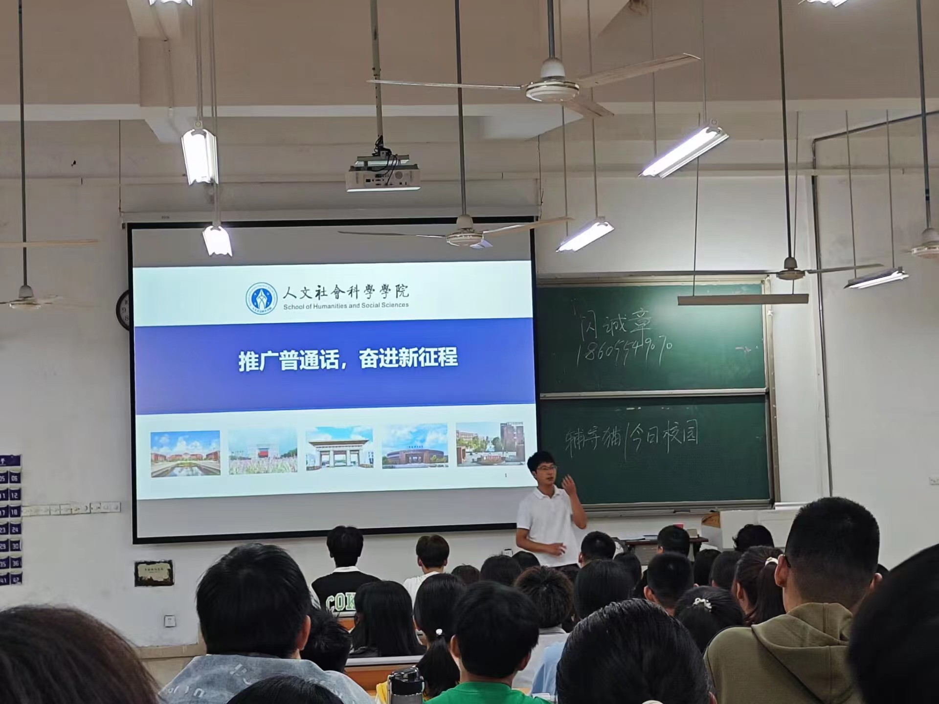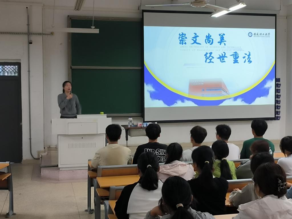 9月11日至17日是第26届全国“推普周”,人文学院结合学校启航教育的相关安排,邀请淮南市广播电视台新闻中心主任播音员、安徽省十佳播音员主持人耿菲菲为全体师生开展普通话推广教育。同时,新生辅导员通过召开主题班会的形式,鼓励新生勇敢表达,积极参与大学生普通话竞赛、语言文字答题挑战、朗诵比赛等,在大学的广阔舞台锻炼自身的普通话表达能力,增强自身的核心竞争力。