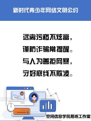 学院团委新媒体中心、易班工作室以网络安全为主题制作宣传视频、宣传海报,利用微信平台、易班平台等融媒体平台推送《新时代青少年网络文明公约》《青少年网络安全科普小视频》等内容。