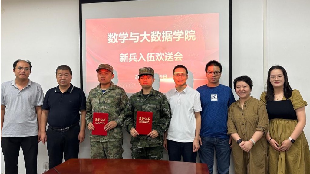“有志学子赴军营,携笔从戎报家园”。9月19日上午,数学与大数据学院在明道楼204举行2023年秋季入伍新兵欢送会。学院领导班子成员、辅导员代表以及新入伍的学生参加了欢送会。会议由学院党委副书记马蓓蕾主持。