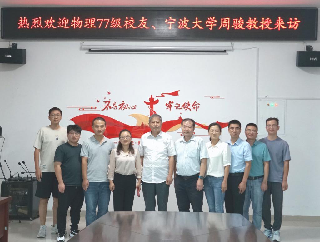 9月19日,我校物理77级校友、宁波大学物理学院周骏教授荣归母校,到访力物学院。物理77级校友、力物学院退休教师顾广颐教授,学院领导、系主任、青年教师代表等参加了欢迎座谈会。座谈会由学院党委书记刘艳主持。