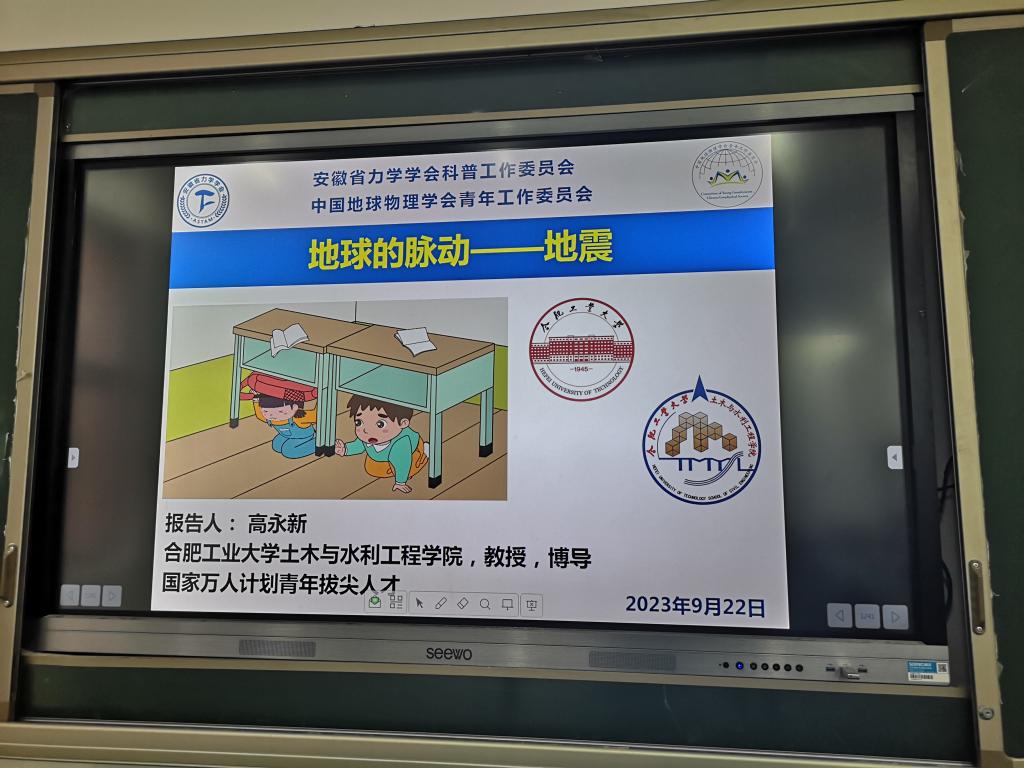 高永新教授以“地球和地震、地震的危害、地震的用途”为提纲展开报告。他首先以提问的方式从认识地球开始讲起,应用多种动态图片和科普视频为学生讲解地震的由来及其危害。他的报告深入浅出,语言通俗易懂,深深吸引了在场学生,现场不时响起热烈的掌声。