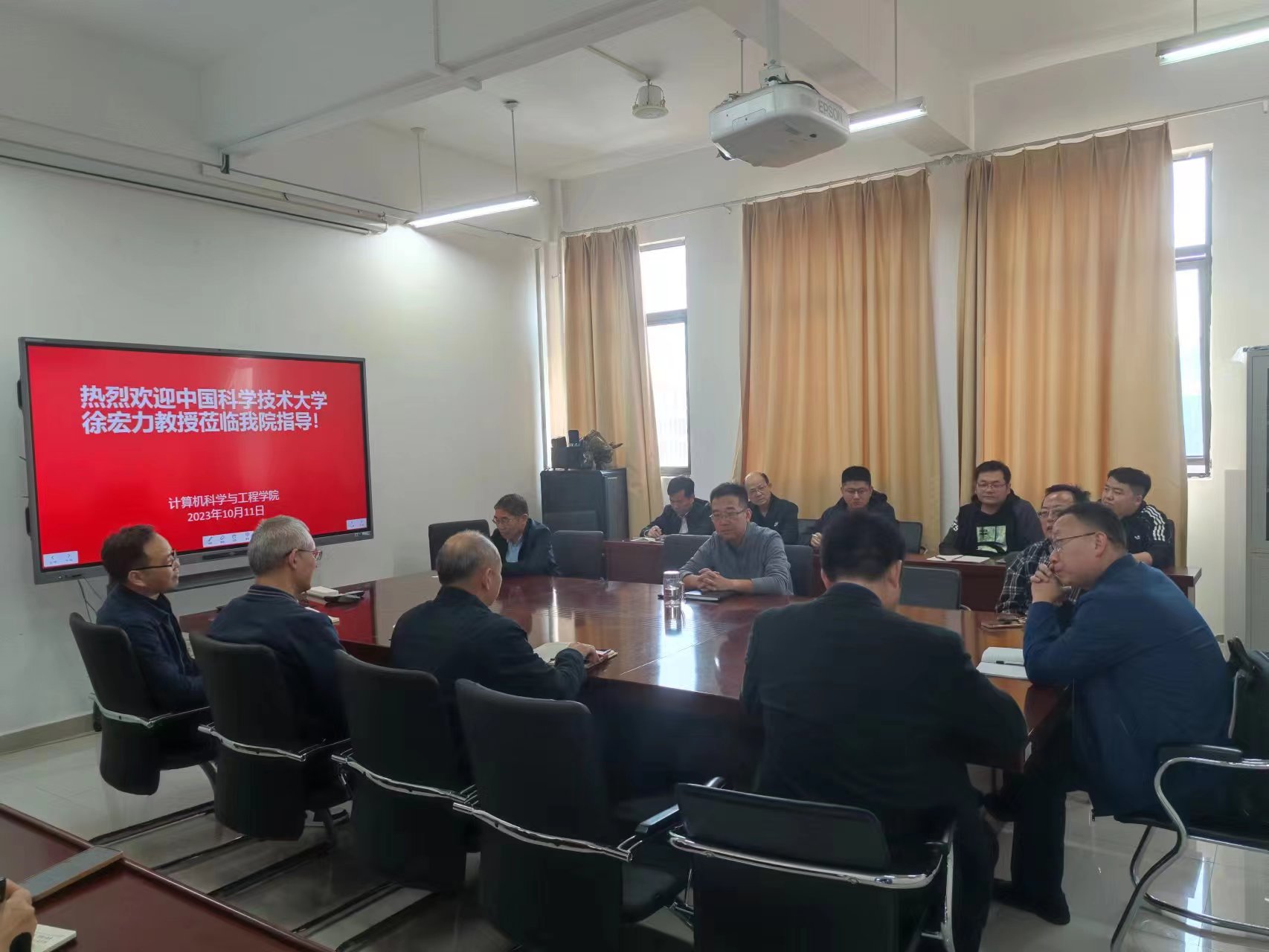 10月11日上午,计算机科学与工程学院邀请中国科学技术大学徐宏力教授到学院进行科研与学科建设指导。学院各系室主任、博士、副教授职称以上人员参加会议。会议由院长方贤进主持。