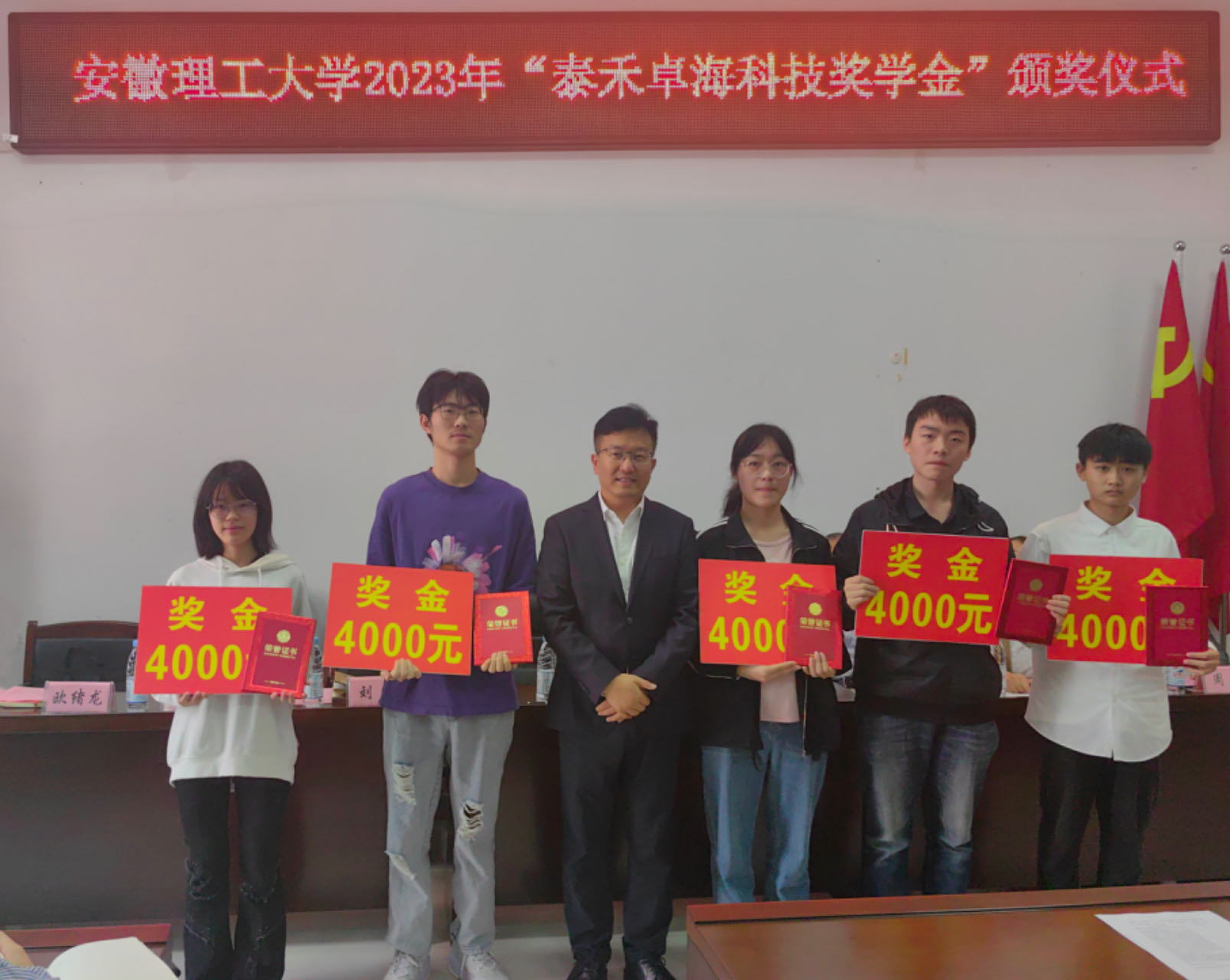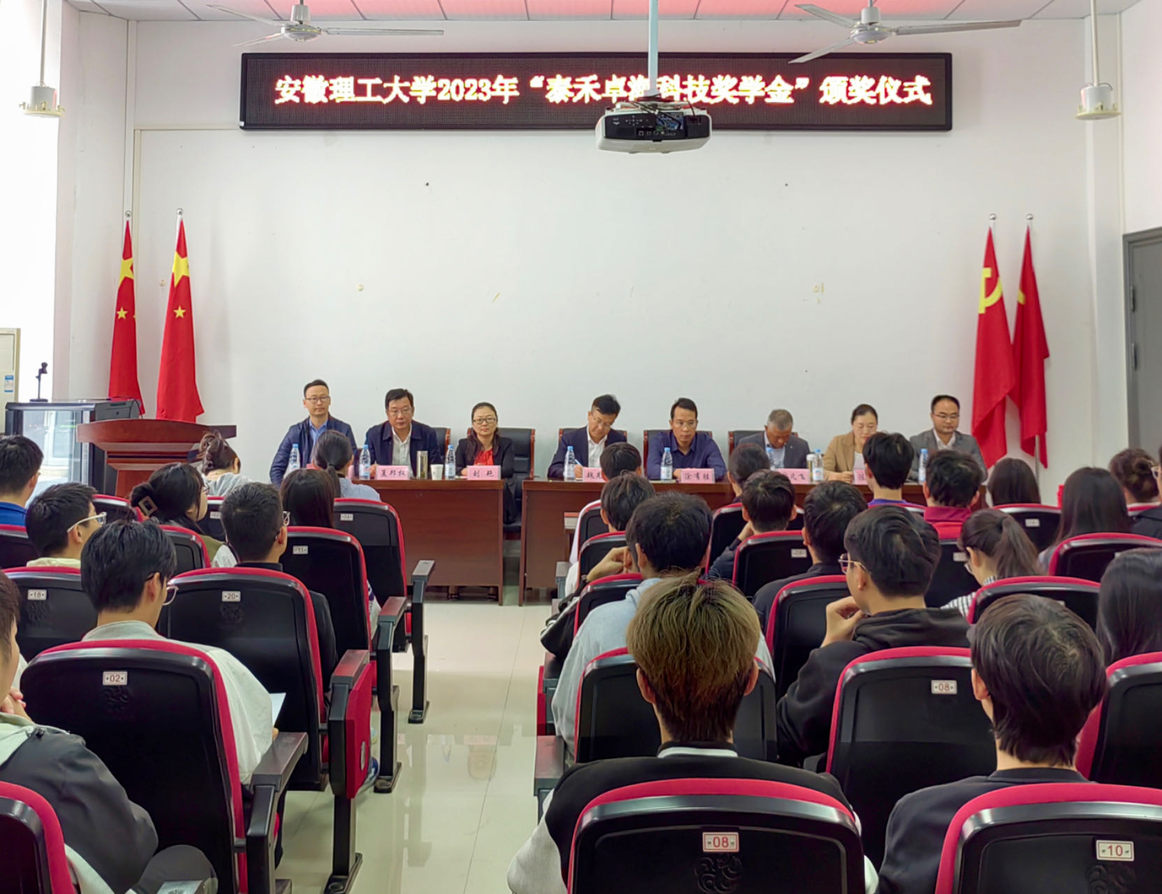 产学研用共育英才,创新赋能共话未来。10月13日上午,2023年度安徽理工大学“泰禾智能科技”新生奖学金颁奖仪式在崇义楼B118会议室举行。泰禾智能科技集团股份有限公司总裁魏先彪、泰禾卓海智能科技有限公司人力总监欧绪龙应邀出席颁奖仪式。校学生处处长涂有胜、校合作发展处处长刘艳,材料学院相关领导、获奖学生及部分学生代表参加了颁奖仪式。