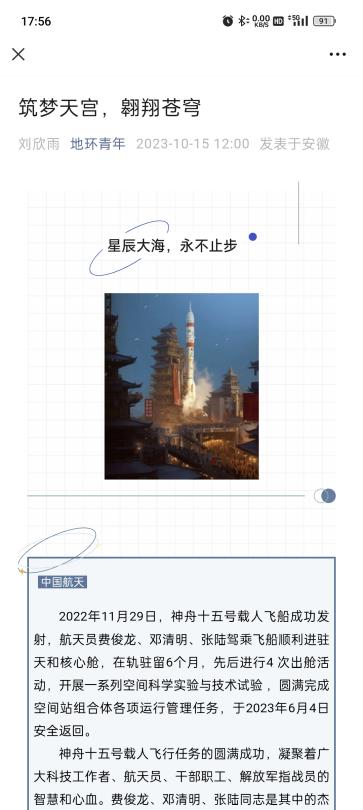 学院团属媒体通过制作推文,回顾新中国航天事业发展的历史,展示新时期以来我国航天事业的伟大成就,向广大同学们宣传了伟大的“两弹一星”精神与载人航天精神。