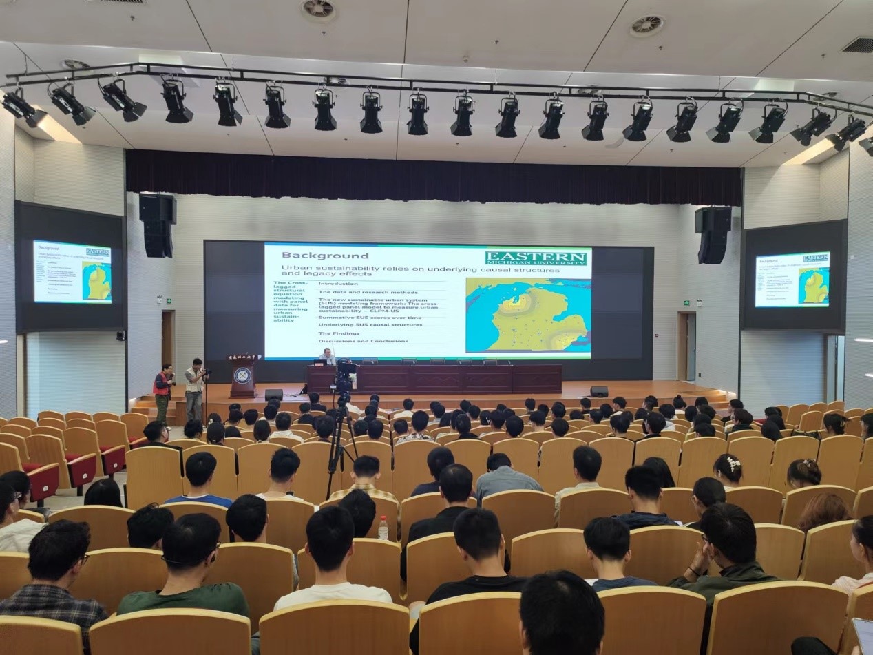 10月15日,空间信息与测绘工程学院邀请美国东密歇根大学谢一春教授在学校舜耕会堂为学院师生作题为“Empirical evaluation of urban sustainability from underlying causal structures and legacy effects: The Prefecture Cities in China as a Case Study”的学术报告,学院青年教师以及研究生等近300人参加了本次报告会。报告会由院长余学祥教授主持。