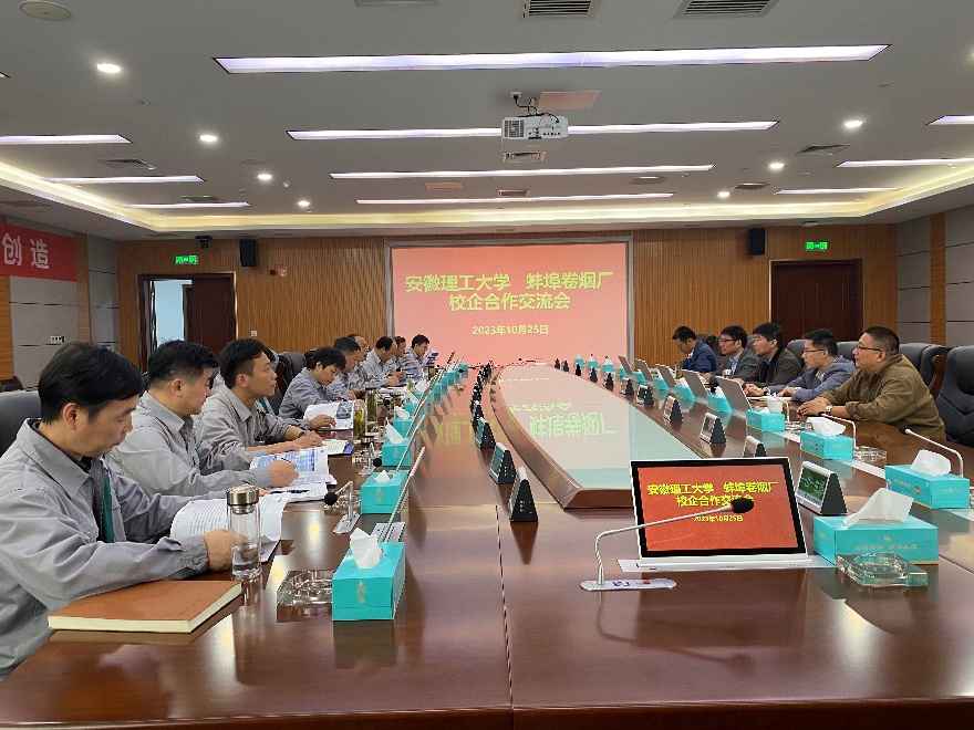 为了加强校企合作,推动科研成果应用落地,10月25日,人工智能学院党委书记张旸一行5人,赴安徽中烟蚌埠卷烟厂开展校企合作交流。安徽中烟蚌埠卷烟厂副厂长张勇,企业管理科、生产科、制丝车间、卷接包车间、动力车间、物流分中心、安全保卫科、质量技术科、设备科、信息中心等主要负责人参加会议。