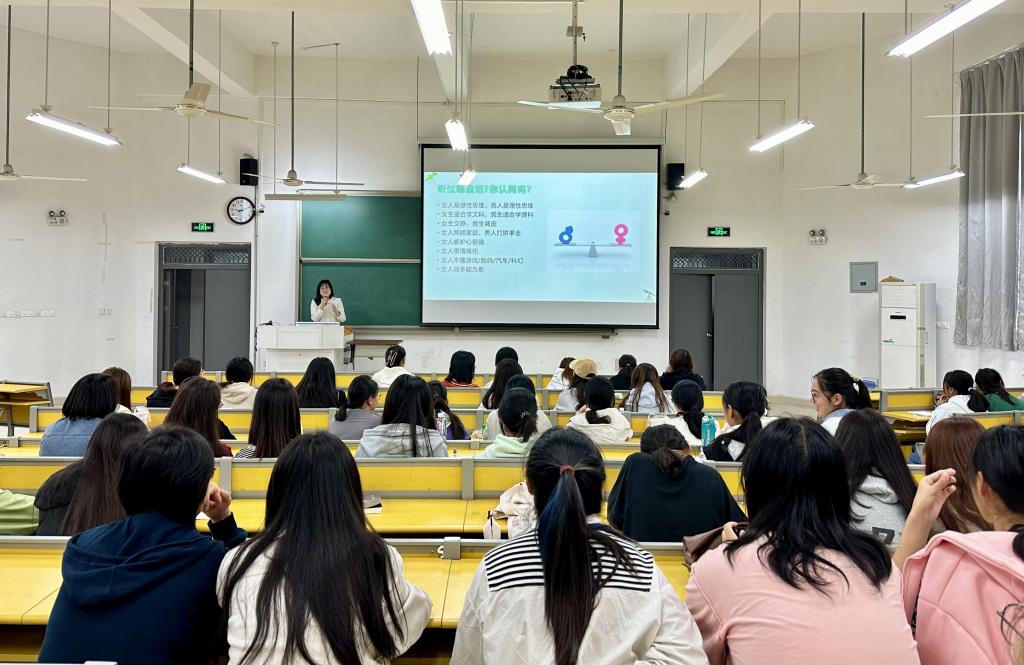 王冰洁以《体会差异,自信人生》为题,通过展示社会对男生和女生的刻板印象的组图引入讲座,她从生理和社会两个层面分析了女性在个体与群体中的独特性和差异性,介绍了男女生在智力结构、情感意志活动、人际交往和情感动机等方面的不同,让女生们更清楚地了解自身优势。同时,鼓励女生们充分认识自我优势,破除发展屏障,并学会建立健康的恋爱观,成为“有思想、有追求、有价值”的女性。