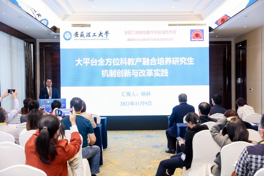 11月9日至10日,全国工程教指委华东区域协作组2023年年会暨研究生教育成果研讨会在上海召开。学校作为华东区域协作组委员单位受邀参会,研究生院负责人作了《大平台全方位科教产融合培养研究生机制创新与改革实践》的专题报告。