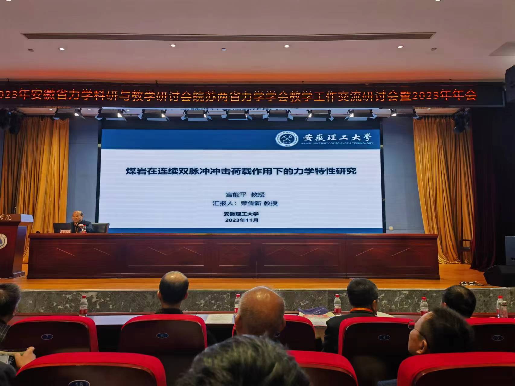大会设置了4场大会特邀报告、5个分会场共30余场专题学术报告。大会特邀报告环节,我校土木建筑学院院长荣传新教授作了题为“连续双脉冲冲击载荷作用下的煤岩力学特性及损伤特性研究”的主旨报告。卢小雨与安徽工程大学葛仁余教授为安徽省第一分会场共同主持人。