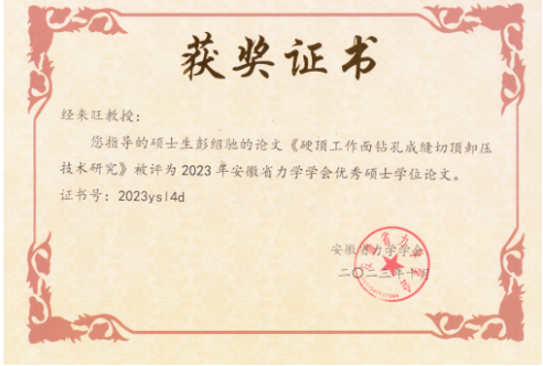 会上,安徽省力学学会为我校力物学院基础力学系教师冯彧雷颁发了2023年安徽省力学学会力学优秀教师奖,为2020级硕士研究生彭绍驰颁发了2023年安徽省力学学会优秀硕士学位论文奖。经来旺教授荣获优秀硕士学位论文指导教师奖。