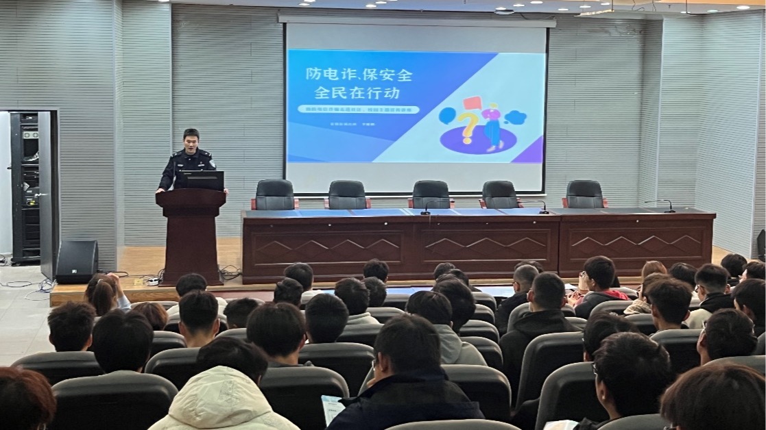 11月13日,人工智能学院在图书馆三楼报告厅开展了反电诈知识讲座,山南分局春晓街派出所民警李耀鹏受邀为同学们讲解反电诈知识,人工智能学院各年级学生200余人参加活动。