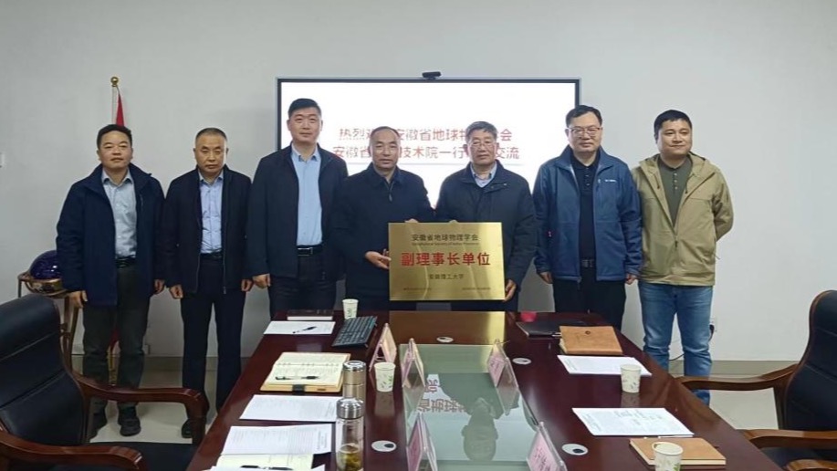 11月16日,安徽省地球物理学会副理事长、安徽省勘查技术院院长许传建为学校新当选为学会副理事长单位授牌,并来地球与环境学院进行交流。校党委常委、副校长、安徽省地球物理学会副理事长张平松,地球与环境学院党委书记陈楠、副院长吴荣新等出席授牌仪式和交流会。