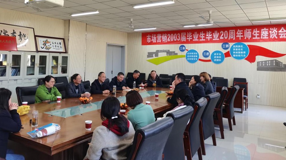 11月18日上午,经济与管理学院市场营销专业2003届校友毕业20周年师生座谈会在崇信楼东102会议室举办。学院党委书记姚德利出席,学院领导班子成员、授课教师代表等参加了座谈会。