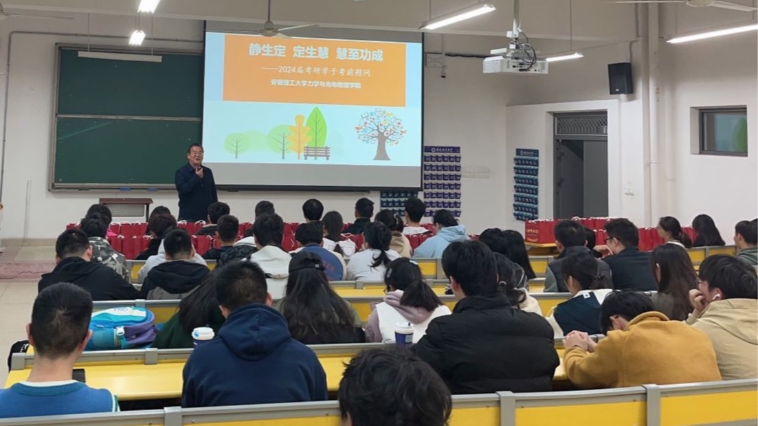 在2024年全国硕士研究生招生考试即将到来之际,为缓解考研学子压力,坚定冲刺信心,11月22日下午,力物学院在明理南314开展考研慰问活动。学院党委副书记(主持工作)孙东升、副院长卢小雨、学生工作负责人出席会议。2020级全体考研学生参加会议。